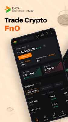 Delta Exchange என்பது FIU-வில் பதிவுசெய்யப்பட்ட கிரிப்டோகரன்சி டெரிவேடிவ்ஸ் பரிமாற்ற மையமாகும். உலகெங்கிலும் உள்ள வர்த்தகர்களால் நம்பப்படுகிறது. BTC மற்றும் Ether-க்கான கால் மற்றும் புட் ஆப்ஷன்கள், ஃபியூச்சர்கள் மற்றும் பெர்பெச்சுவல்ஸ் வர்த்தகம் செய்யலாம்.