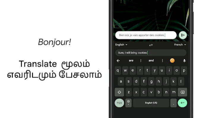பன்மொழித் தொடர்புகளுக்கு, Gboard ஒரு நம்பகமான துணையாகும். நீங்கள் எந்த மொழியில் தட்டினாலும், Gboard தானாகவே கண்டறிந்து, பிழைகளைத் திருத்தி, பொருத்தமான வார்த்தைகளை பரிந்துரைக்கும். உள்ளமைக்கப்பட்ட Google Translate அம்சம், நீங்கள் தட்டச்சு செய்யும்போதே உடனடியாக மொழிகளை மொழிபெயர்க்க உதவுகிறது, இது சர்வதேசத் தொடர்புகளை மேலும் சிரமமில்லாததாக மாற்றுகிறது. மேலும், நூற்றுக்கணக்கான உலக மொழிகளான தமிழ், ஆங்கிலம், இந்தி, அரபிக், பெங்காலி, சீன, பிரெஞ்சு, ஜெர்மன், ஜப்பானீஸ், மலையாளம், ஸ்பானிஷ் மற்றும் இன்னும் பலவற்றை Gboard ஆதரிக்கிறது. உணர்வுகளை வெளிப்படுத்த, ஆயிரக்கணக்கான எமோஜிகள் மற்றும் அவற்றை எளிதில் தேடும் வசதி, அத்துடன் சரியான உணர்வை வெளிப்படுத்தும் GIF-களைத் தேடிப் பகிரும் அம்சமும் இதில் அடங்கும்.