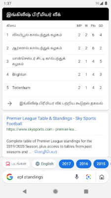 உங்கள் உரையாடல்களுக்கு மேலும் சுவாரஸ்யம் சேர்க்க, பொருத்தமான படங்களையும் அனிமேஷன் GIFகளையும் உடனுக்குடன் தேடிப் பகிரலாம். நண்பர்களுடனான அரட்டைகள் இனி மேலும் கலகலப்பாக மாறும். மொழித்தடைகள் உங்களுக்கு ஒருபோதும் பிரச்சனையாக இருக்காது. உங்கள் தேடல் முடிவுகளுக்கான இரண்டாவது மொழியைத் தேர்வுசெய்து, தேவைக்கேற்ப மாற்றிக்கொள்ளும் வசதியுடன், உலகளாவிய தகவல்களை உங்கள் மொழியிலேயே அணுகிப் பலனடையுங்கள். நீங்கள் இணையத்தில் எதைத் தேடினாலும், அதை எளிதாகவும் துரிதமாகவும் கண்டுபிடிக்க **Google Go** உறுதுணையாக இருக்கும்.