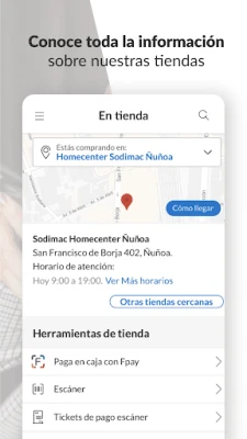 கட்டுமானத் துறையைச் சேர்ந்த மாஸ்டர்கள் மற்றும் நிபுணர்களுக்காக, Sodimac செயலி ஒரு தனித்துவமான அம்சத்தை வழங்குகிறது. தரைத்தளம் மற்றும் வர்ணம் பூசும் திட்டங்களுக்கான மதிப்பீடுகளை திறமையாகக் கணக்கிட இது உதவுகிறது. உங்கள் இடத்தின் பரிமாணங்களை உள்ளிடுவதன் மூலம், தேவையான பொருட்கள் மற்றும் தொடர்புடைய செலவுகள் உட்பட ஒரு விரிவான மதிப்பீடு தானாகவே உருவாக்கப்படும். திட்டமிடல் மற்றும் செலவு கணக்கீடுகளில் நேரத்தையும் முயற்சியையும் மிச்சப்படுத்துங்கள். மேலும், Sodimac செயலியின் அறிவிப்புகள் மூலம், தவிர்க்க முடியாத, தனித்துவமான வாய்ப்புகளையும், பிரத்தியேக விளம்பரங்களையும் தவறவிடாமல் பெறலாம், இது உங்கள் ஒவ்வொரு வாங்குதலையும் லாபகரமானதாக மாற்றும்.