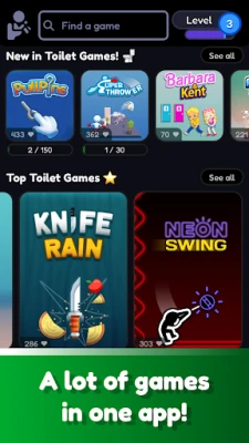 டாய்லெட் கேம்ஸ் முடிவில்லா வேடிக்கையை வழங்குகிறது! மேலே ஸ்வைப் செய்து ஒரு கேமில் இருந்து அடுத்த கேமிற்கு செல்லுங்கள். ஆயிரக்கணக்கான தனித்துவமான சவால்கள் உங்களுக்காகக் காத்திருக்கின்றன. உங்கள் ரசனைக்கு ஏற்ப சரியான கேம்கள் தேர்ந்தெடுக்கப்படுகின்றன. அடுத்த சிறந்த கேம் ஒரு ஸ்வைப் தூரத்தில் உள்ளது.