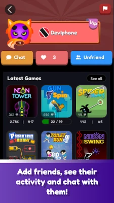 Toilet Games செயலி, நீங்கள் விரும்பும் வீடியோ செயலியைப் போலவே, விரல் அசைவில் விளையாட்டுகளை மாற்றியமைக்கும் எளிய ஸ்வைப் வசதியுடன் வருகிறது. நூற்றுக்கும் மேற்பட்ட பல்வேறு வகைகளிலான விளையாட்டுகள் மற்றும் ஆயிரத்திற்கும் மேற்பட்ட முழுமைப்படுத்தப்பட வேண்டிய சுவாரஸ்யமான சவால்கள் உங்களை நீண்ட நேரம் மகிழ்விக்கும். ஒவ்வொரு சவாலும் உங்களின் திறமையை பட்டை தீட்டி, புதிய உயரங்களை எட்டத் தூண்டும். உலகெங்கிலும் உள்ள மற்ற வீரர்களுடன் போட்டியிட்டு, லீடர்போர்டுகளில் உங்களின் பெயரை நிலைநாட்ட இதுவே சிறந்த வாய்ப்பு.