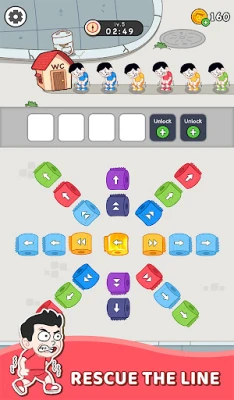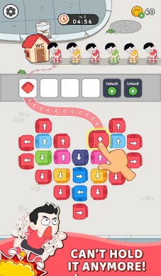 விளையாடுவது எளிது, ஆனால் திறன்பட செயல்படுவது ஒரு சவாலான கலை! கழிவறை காகித சுருள்களை அவற்றின் வண்ணங்களுக்கு ஏற்ப தட்டி வரிசைப்படுத்துவதே உங்கள் பணி. ஒவ்வொரு வண்ண சுருளும் அதே நிற சட்டை அணிந்த நபருடன் பொருந்த வேண்டும். சரியாகப் பொருத்திவிட்டால், அவர்கள் நிம்மதியாக கழிப்பறையைப் பயன்படுத்த முடியும். ஆனால், ஒரு சிறு தவறு அல்லது தாமதம், மொத்த சூழ்நிலையையும் பெருங்குழப்பத்திற்குள் தள்ளிவிடும்! விரைவாக செயல்பட்டு, ஒவ்வொரு போட்டியையும் வெற்றிகரமாக முடிக்க வேண்டியது அவசியம்.
