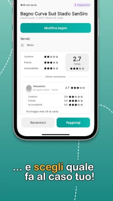 "வேர் இஸ் தி டாய்லெட்" செயலி, உங்களுக்கு அருகிலுள்ள இலவசமான, கட்டணமான அல்லது பொருட்செலவில் பயன்படுத்தக்கூடிய கழிப்பறைகளைக் கண்டறிய உதவுகிறது. உங்கள் அனுபவத்தை மதிப்பிட்டு, கருத்து பகிர்வதன் மூலம் மற்ற பயனர்களுக்கு உதவுங்கள்.